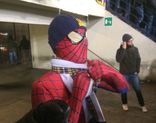 Uno scherzo? Forse sì, ma a ben vedere qualcuno di particolare sugli spalti c’è. Ma certo è Spiderman, travestito da tifoso dell’Hellas però. Sciarpa al collo e cappellino gialloblu d’ordinanza, giusto per non farsi mancare nulla. Per Carnevale manca ancora qualche giorno, al Bentegodi però hanno deciso di giocare d’anticipo…