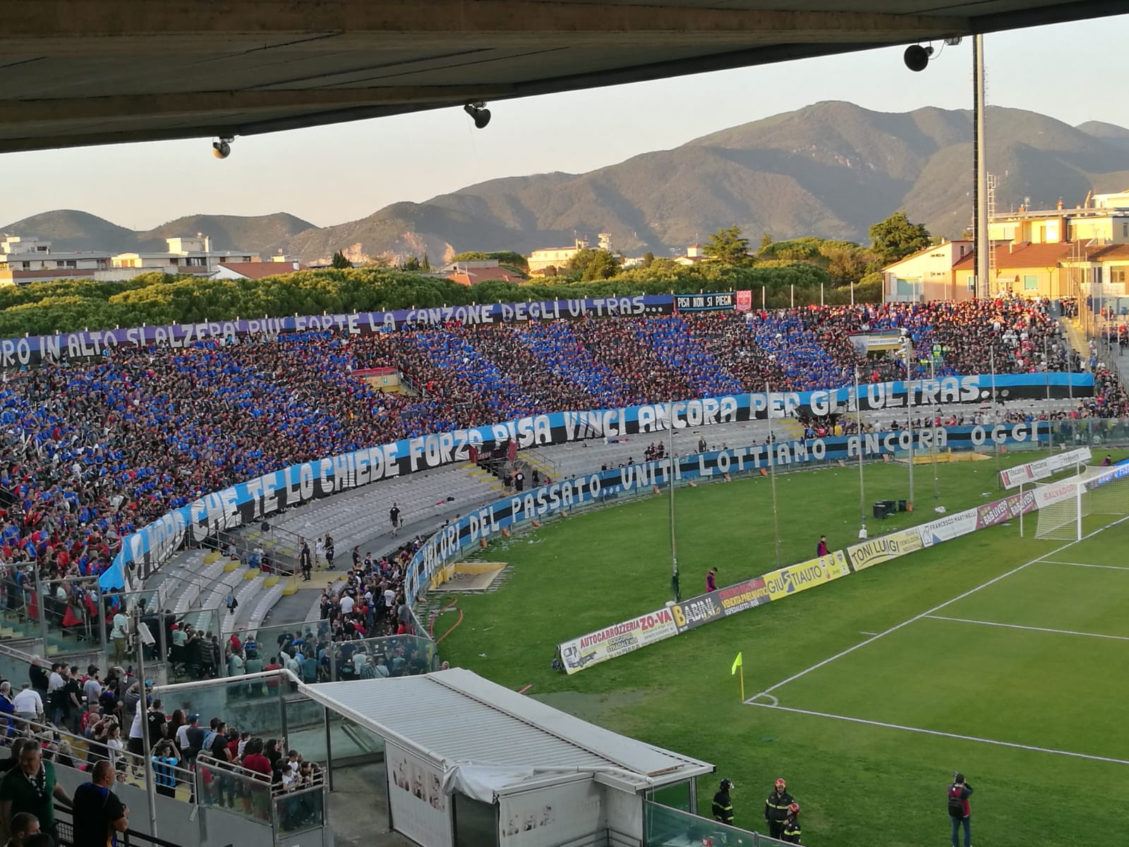 “Andiamo tutti a Trieste”. Finisce così, con la Curva Nord che si dà appuntamento fra quattro giorni per la gara di ritorno. Pisa e Triestina, tutto in 90’ o forse più. La B è lì, ad un passo, ma serve un ultimo scatto per raggiungerla. Palla lunga e pedalare direbbe Nereo Rocco, che se la godrà dall’alto. Una questione di nervi, come le rimonte del Pisa. Due volte sotto, non facile in serate così. I tifosi arrivati all’Arena sono tanti, oltre 9mila. Cominciano con una coreografia splendida, continuano cantando incessantemente. Anche dopo la rete di Costantino all’inizio, anche dopo il gol del 2-1 di Formiconi a pochi secondi dall’intervallo. Pisa e la sua gente come un pugile alle corde. Che incassa, barcolla ma reagisce a suon di ganci.