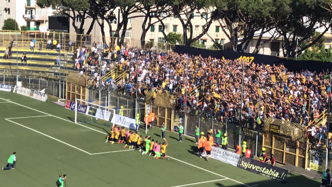 Basta una pareggio alla Juve Stabia per superare il primo turno dei playoff. Il Catania non riesce ad espugnare il Romeo Menti, non andando oltre lo 0 a 0. Siciliani che sono rimasti in dieci dalla mezz’ora del primo tempo a causa dell’espulsione di Parisi, riuscendo comunque a rimanere in partita per oltre un’ora. Nel prossimo turno i campani affronteranno la Reggiana. Ecco le foto dei festeggiamenti a Castellammare di Stabia.