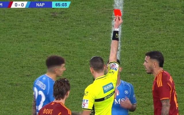 Rimane in dieci uomini il Napoli dopo l’espulsione per Matteo Politano. L’esterno italiano ha reagito con un calcio a un fallo di Zalewski. Gli azzurri, poi, hanno subito anche il gol della Roma con un gran tiro di Pellegrini che ha battuto Meret.