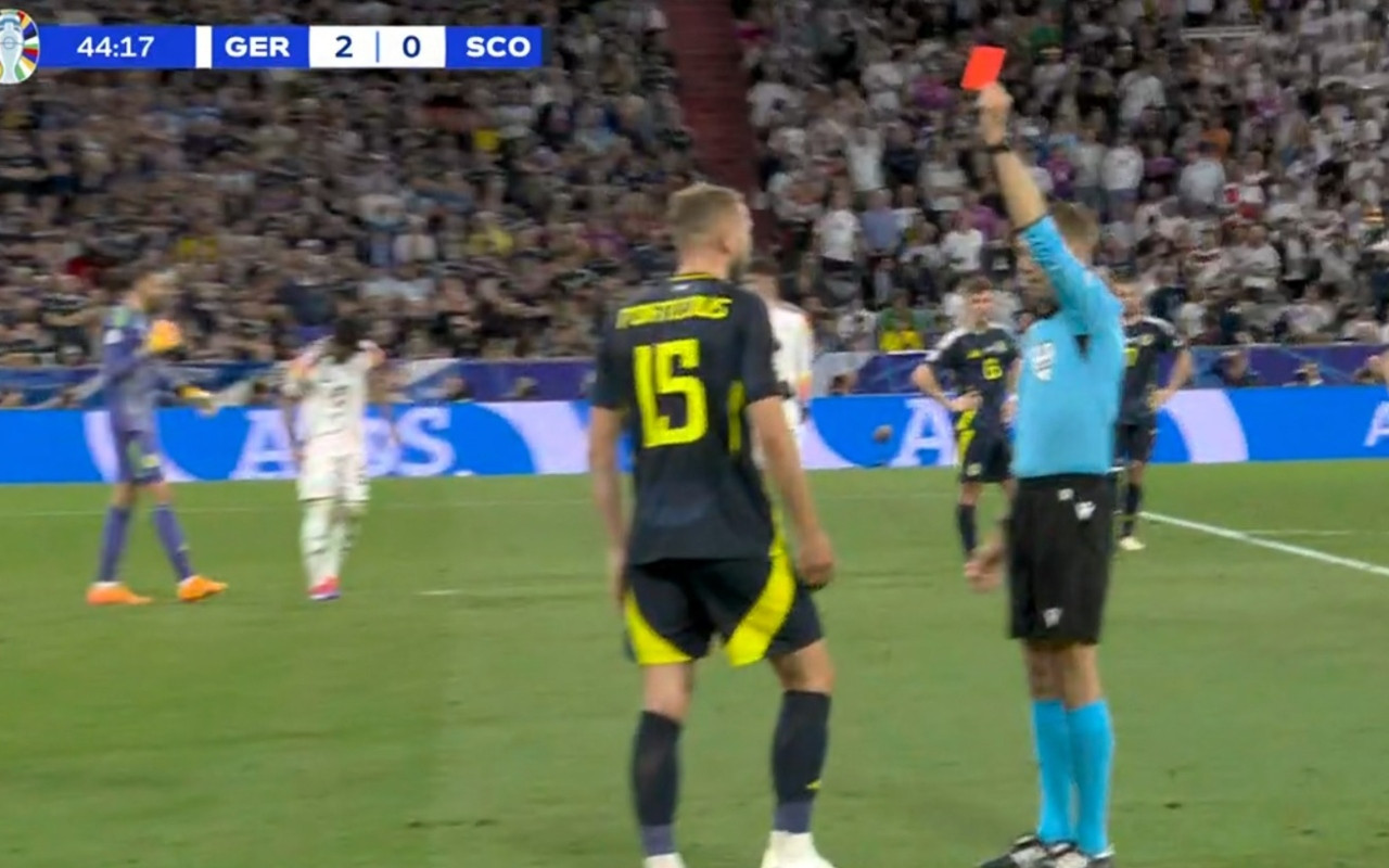 Porteous si è infatti reso protagonista di un bruttissimo intervento in area di rigore su Gundogan. Dopo la revisione del VAR, è arrivato il calcio di rigore per la Germania e il conseguente rosso per il difensore della Scozia.