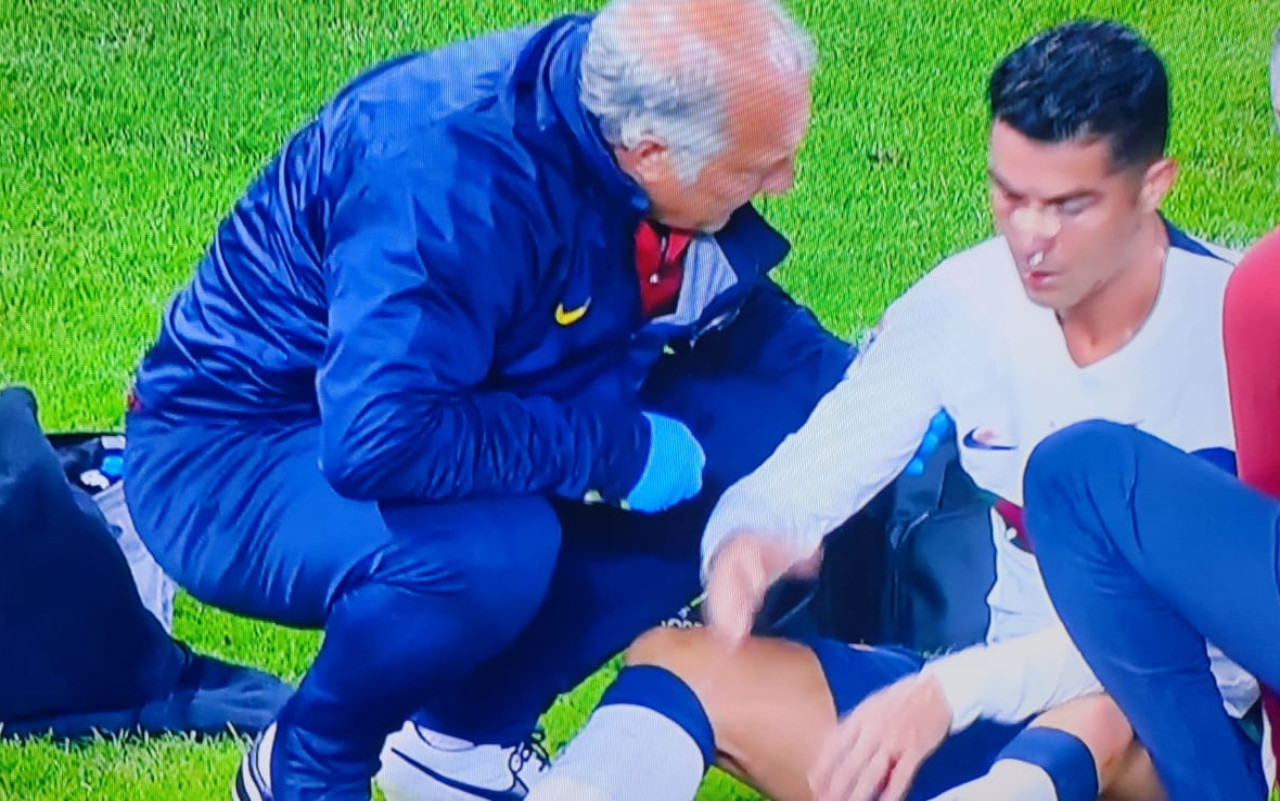 Ronaldo è stato costretto a fermarsi a causa della ferita che ha provocato un’ingente perdita di sangue, tanto da costringerlo a cambiare maglia. L’ex Juve ha però stretto i denti ed ha continuato la partita, ancora sullo 0-0.