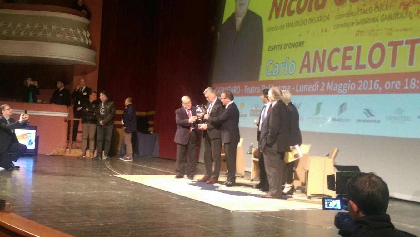Emozioni indelebili, Catanzaro ricorda. E’ Carlo Ancelotti, ex allenatore di Milan, Paris Saint-German e Real Madrid, a portare a casa la settima edizione del prestigioso Premio Nicola Ceravolo, riconoscimento intitolato al presidente di quel Catanzaro che calcò il glorioso palcoscenico della Serie A. L’evento ha visto come assoluto protagonista proprio il futuro allenatore del Bayern Monaco Carlo Ancelotti, vera star di questa manifestazione andata in scena al Teatro Politeama di Catanzaro. Ad assistere alla premiazione anche il sindaco di Catanzaro, Sergio Abramo e il presidente del Coni Calabria, Maurizio Condipodero. Ecco tutte le foto dell’evento: