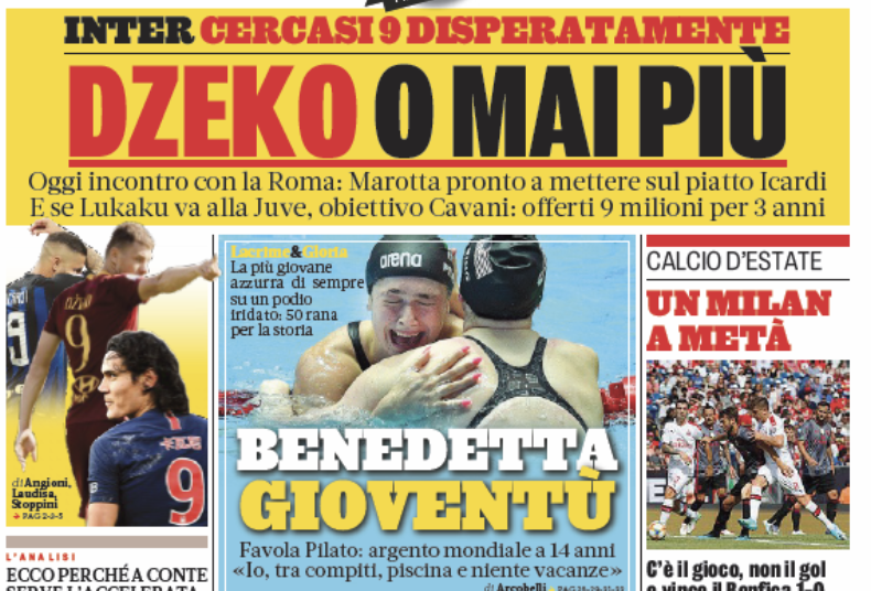 Calcio giocato e calciomercato: dopo un weekend estivo la settimana comincia all'insegna dei grandi motori calcistici dei mesi più caldi. L'evoluzione delle trattative per i centravanti, il grandissimo risultato del Napoli sul Liverpool: tutto questo nelle anteprime dei giornali in edicola il 29 luglio che puoi sfogliare nella gallery in alto.