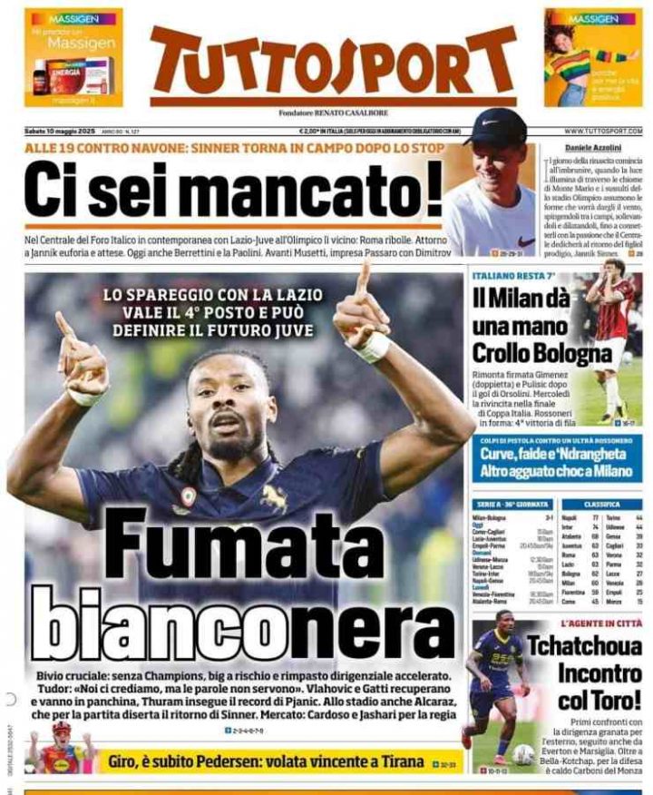La gallery delle prime pagine dei principali quotidiani sportivi in edicola nella giornata di oggi, sabato 10 maggio 2025.