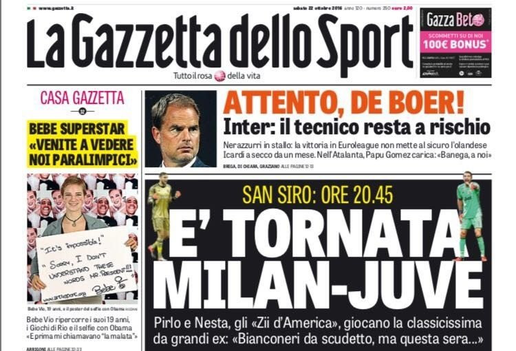Continuano le polemiche dopo Juventus-Inter. La Gazzetta dello Sport parla di “Video attack”, relativamente alle immagini inedite con cui i nerazzurri contestano la direzione di Rizzoli. Di fondo, “Il festival della Roma” che batte la Fiorentina, mentre in taglio alto c’è il presidente Percassi che si gode la sua squadra: “Una vera favola la mia Atalanta con Gasp”.