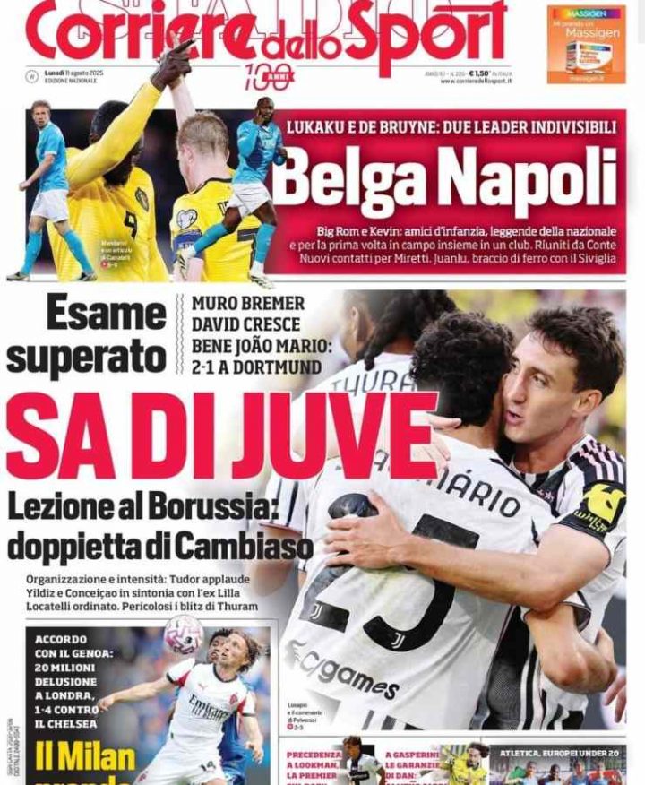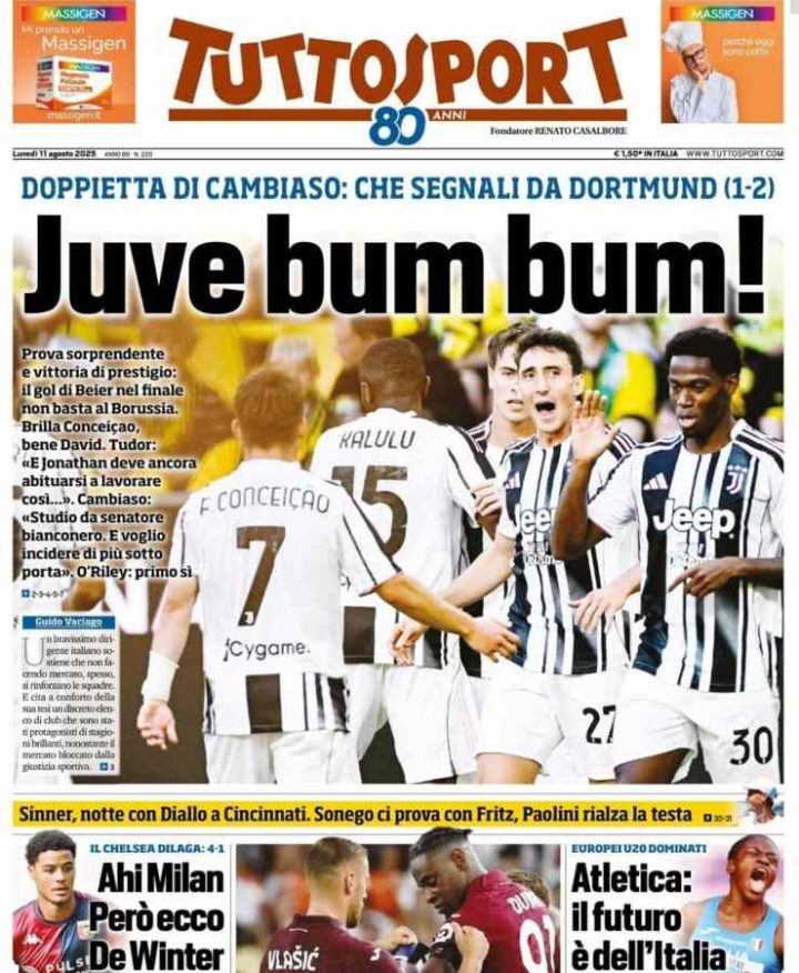 “Sa di Juve” titola il Corriere dello Sport: con una doppietta di Cambiaso infatti la Juventus ha superato il Borussia Dortmund nell’amichevole giocata ieri.