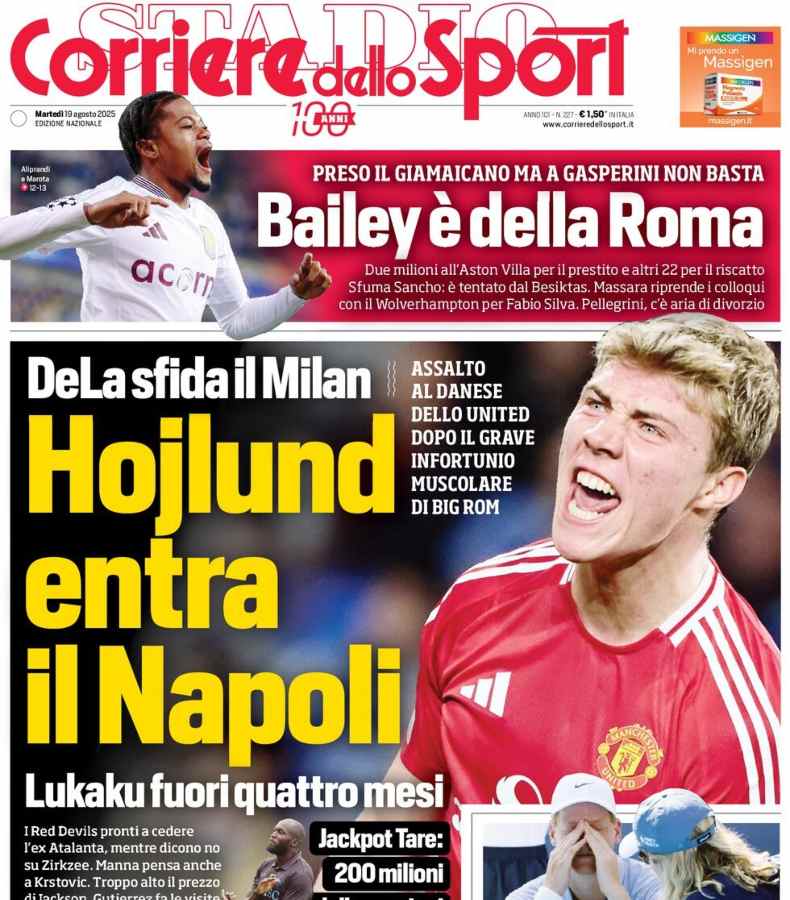 Il Corriere dello Sport dedica ampio spazio al calciomercato del Napoli. Ma non solo: Bailey, infatti, si appresta a diventare un nuovo giocatore della Roma.