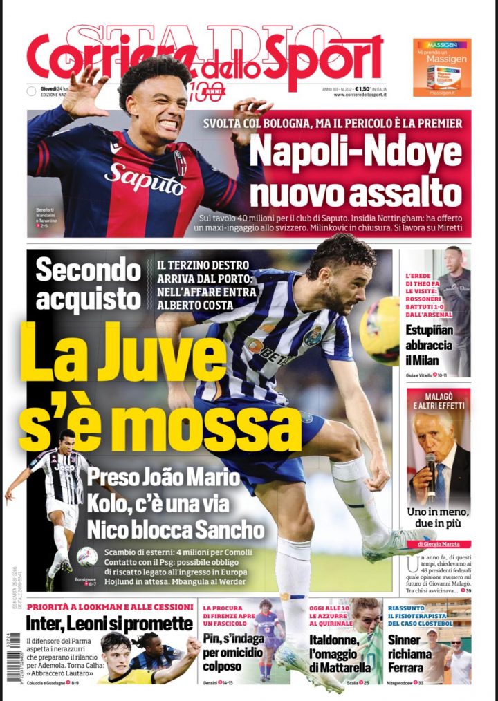 La Gazzetta dello Sport dà spazio all’arrivo di Joao Mario in bianconero, parlando anche delle altre trattative di mercato del club torinese. Ampio spazio anche per Ndoye-Napoli.