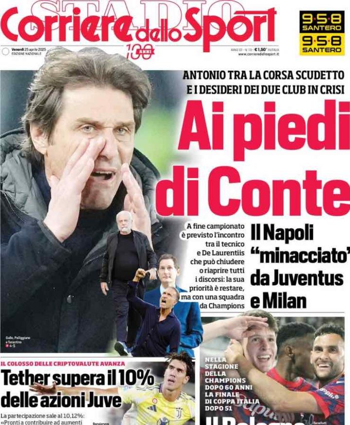 Il Corriere dello Sport si concentra sul futuro di Antonio Conte, che si gioca lo scudetto nelle ultime cinque giornate di campionato.