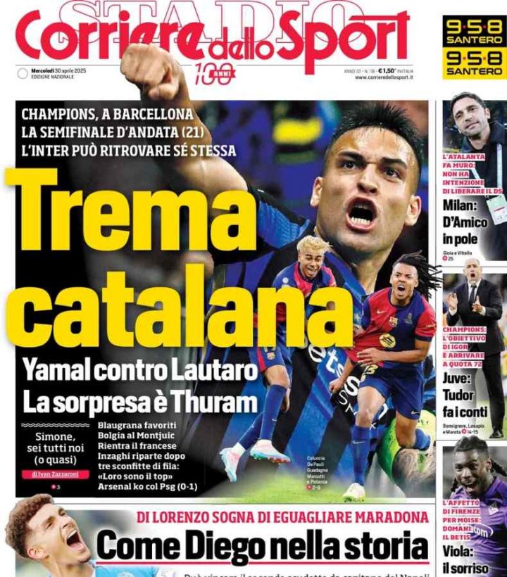 Il Corriere dello Sport, in particolare, sottolinea il duello tra Lautaro Martinez e Lamine Yamal, con Thuram che nel frattempo ha recuperato e dovrebbe iniziare dal 1′.