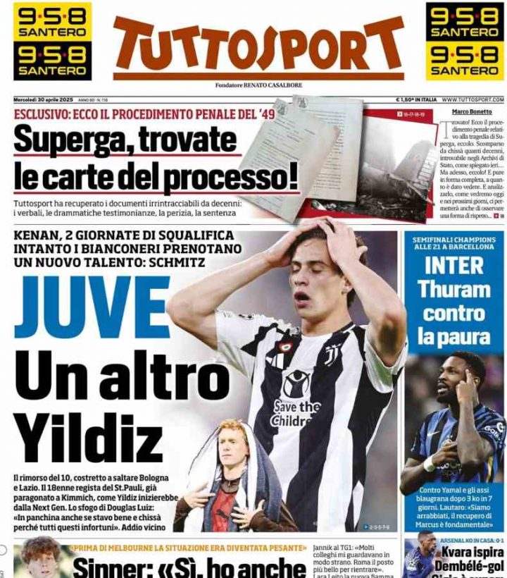 Tuttosport si sofferma sulla squalifica di due giornate a Kenan Yildiz, con sullo sfondo un nuovo talento di nome Schmitz del St. Pauli.