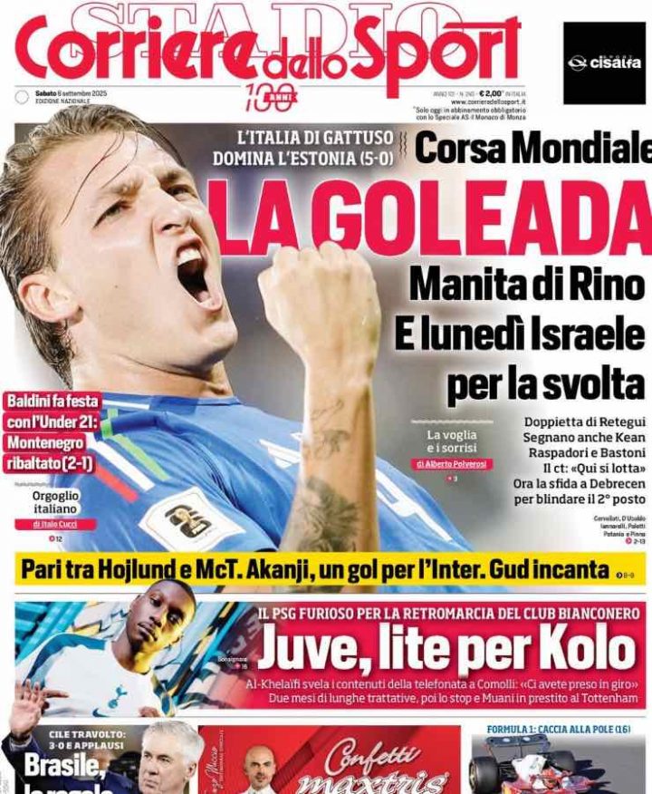 Anche il Corriere dello Sport parte dal successo dell’Italia, con un punto anche sulle partite dei giocatori di Serie A impegnati con le rispettive Nazionali.