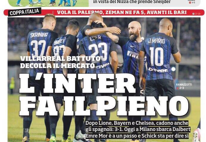 “Che diavolo sei?” per il Corriere dello Sport, Montella resta in bilico, mentre la Lazio passa ai sedicesimi, l’Atalanta invece viene raggiunta all’ultimo minuto. In alto l’infortunio di Ghoulam: “Napoli: Vrsaljko” gli azzurri pensano all’ex Sassuolo per sostituire l’algerino.