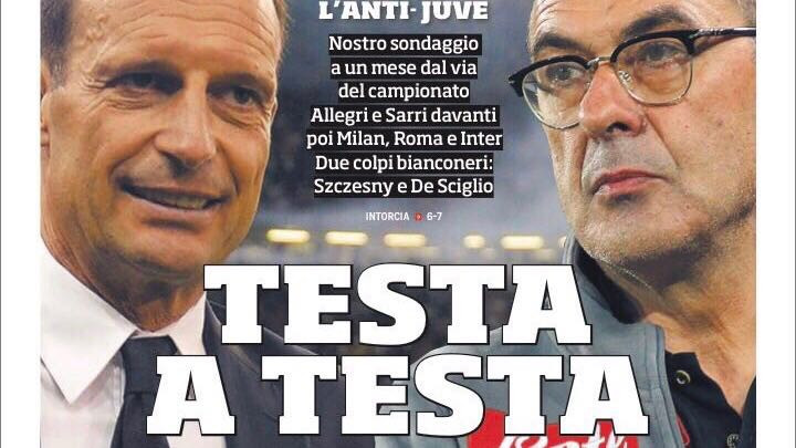 Neymar all’estero, il mercato delle big in Italia. Calciomercato ovunque, partendo dal Corriere dello Sport: “Testa a testa”, parlando del confronto Juventus-Napoli nel prossimo campionato. Tuttosport dedica la sua prima pagina a Juventus e Torino: “Finalmente”. Berenguer, Szczesny e De Sciglio i tre colpi bianconeri e granata.