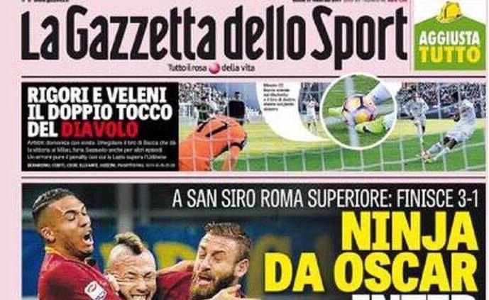 ‘La Gazzetta dello Sport’ apre con “Ninja da oscar; Inter (S)comparsa”. Spazio poi anche al rigore delle polemiche in quel di Sassuolo: “Rigore e veleni: il doppio tocco del diavolo”. Ed infine si torna a parlare anche di Atalanta.