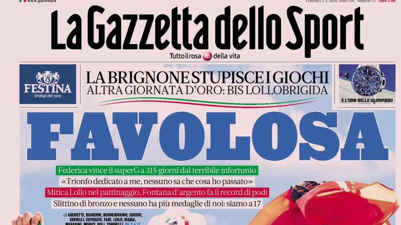 La Gazzetta dello Sport apre ripercorrendo il successo ai giochi invernali di Milano-Cortina di Federica Brignone. A distanza di pochi mesi dall’infortunio l’italiana conquista l’oro nel SuperG femminile.
