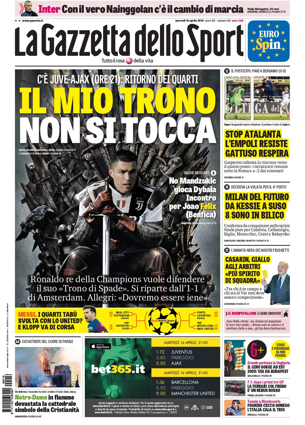 L'addio di Allegri alla Juventus, il calciomercato e il valzer delle panchine. Ma anche il campo, con la penultima giornata di campionato che si apre oggi e i playoff di B e C. Questi i temi principali delle prime pagine dei quotidiani sportivi (e non) in edicola oggi.