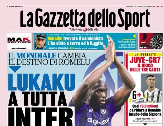 SCORRI PER LEGGERE LE PRIME PAGINE SPORTIVE IN EDICOLA OGGI, 3 DICEMBRE 2022