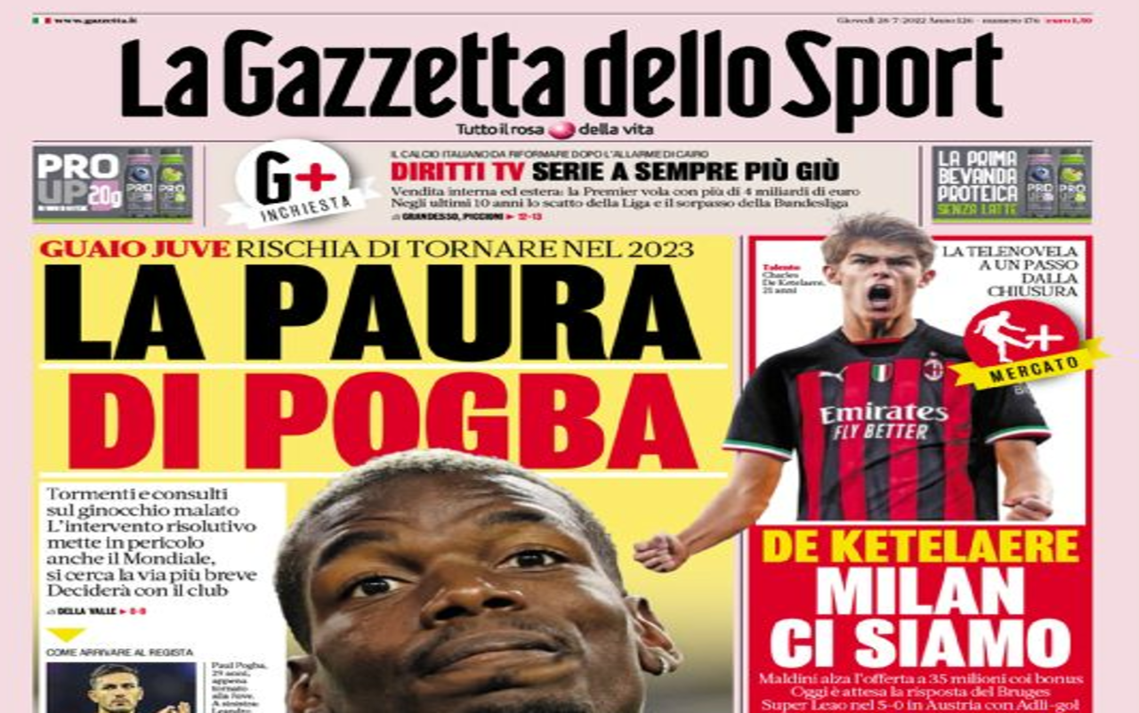 La lite tra Juric e Vagnati, la rivoluzione a Palermo dopo le dimissioni dell’allenatore Baldini e del ds Castagnini oltre al calciomercato e alle ultime sulle condizioni di Pogba. Questo e altro nelle prime pagine sportive dei quotidiani in edicola oggi, giovedì 28 luglio 2022.