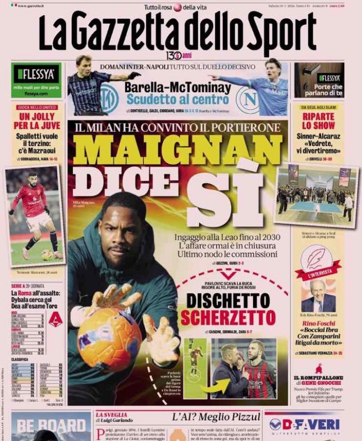 Prime pagine: “Maignan dice sì”; “Chivu-Conte, il massimo”