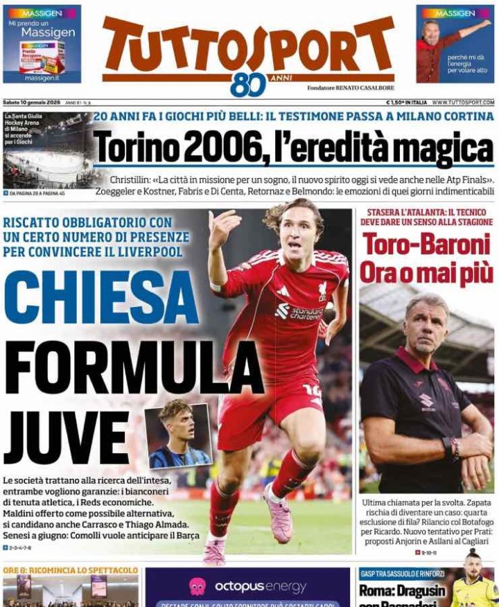 Infine Tuttosport apre con l’idea della Juventus di riportare Chiesa in Italia, anche se al momento il Liverpool non apre al trasferimento in prestito. Spazio anche al Torino, che punta a riscattare la sconfitta contro l’Udinese in trasferta contro l’Atalanta.