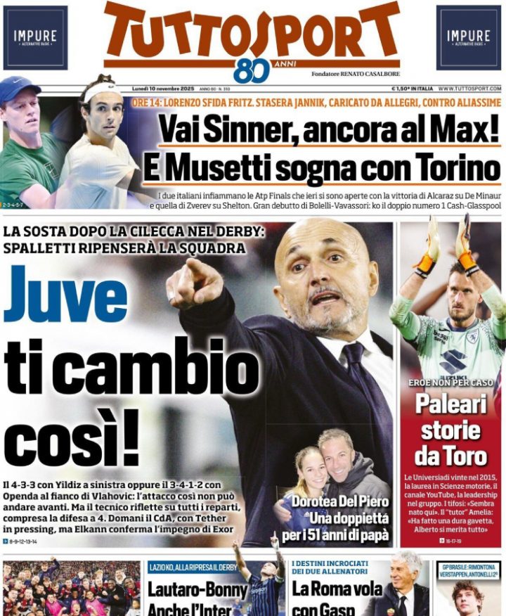 Tuttosport parla dei possibili cambiamenti di Spalletti per la Juventus, con la storia di Paleari sulla destra, eroe del Derby della Mole di sabato 8 novembre.
