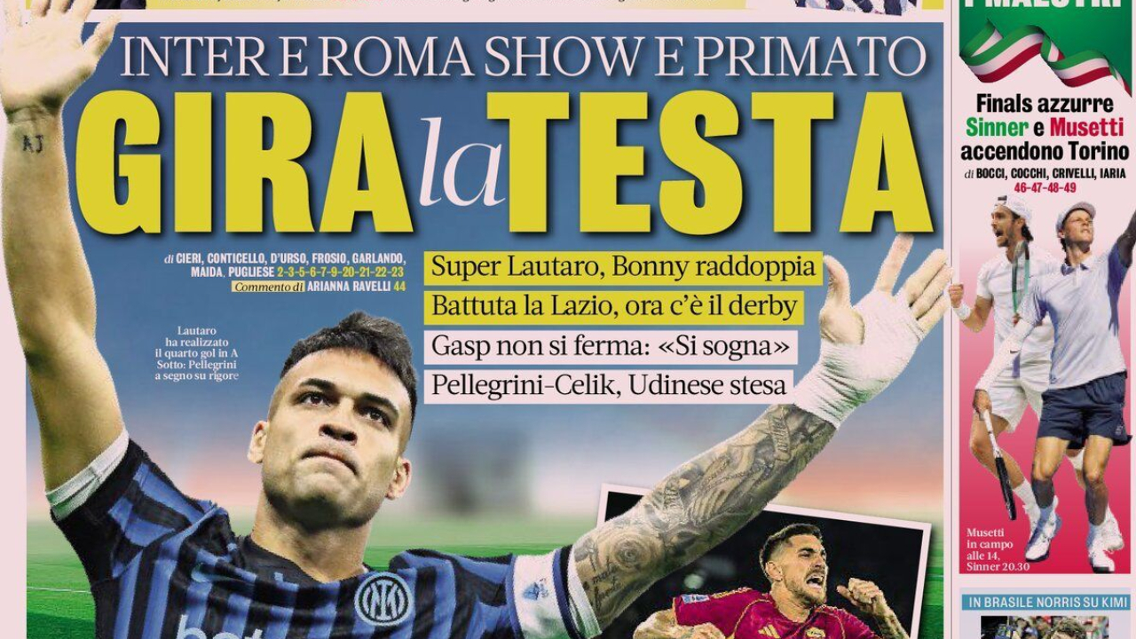 La gallery delle prime pagine dei principali quotidiani sportivi italiani in edicola oggi, lunedì 10 novembre 2025.