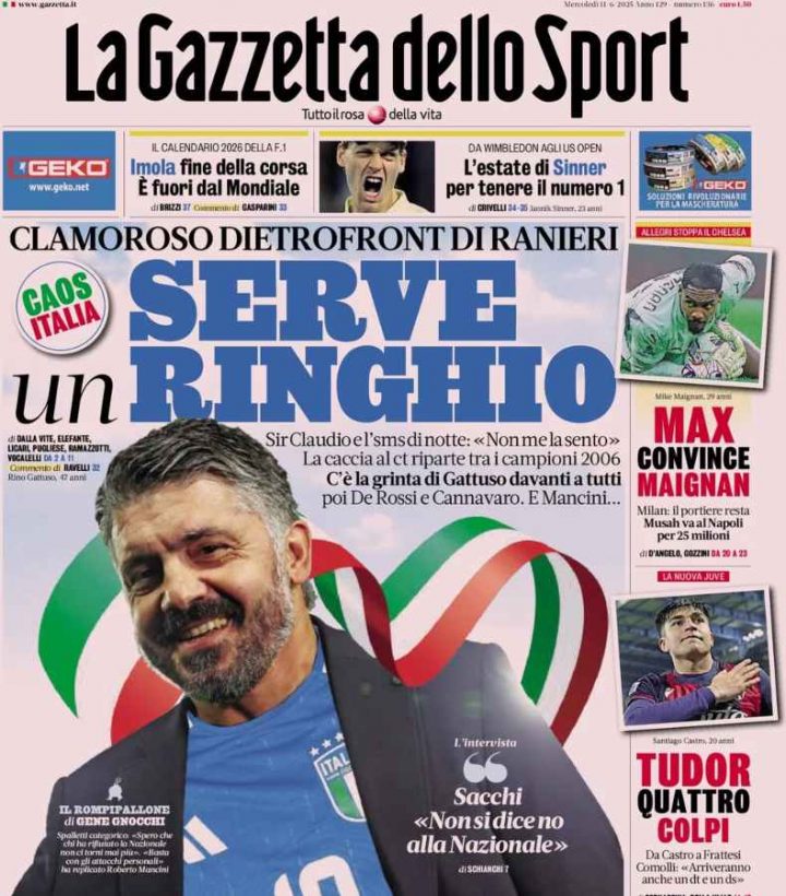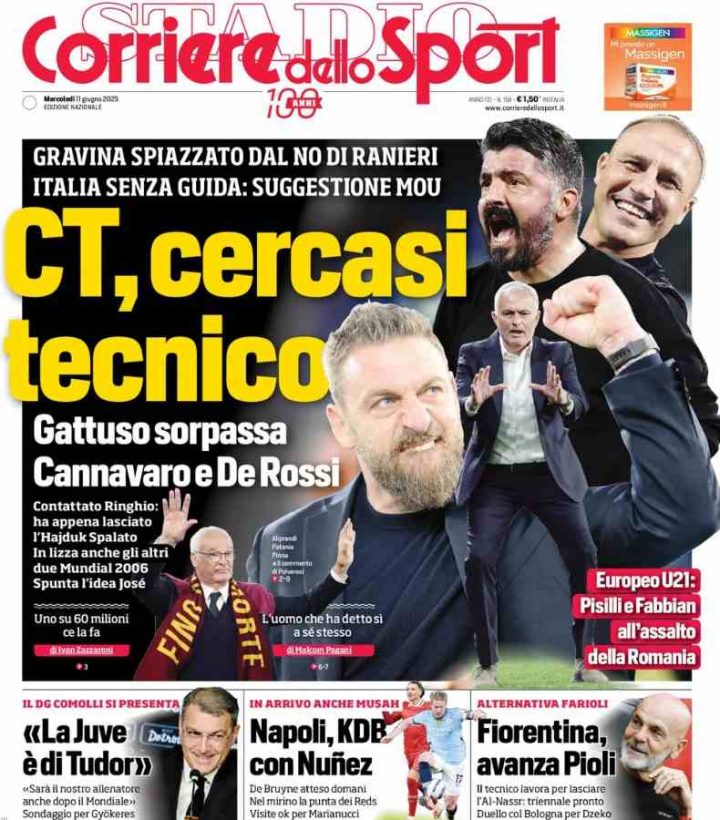 Il Corriere dello Sport, pure, mette l’accento sulla particolare situazione legata al prossimo CT degli Azzurri. Dal no di Ranieri alla ricerca di un nuovo profilo.