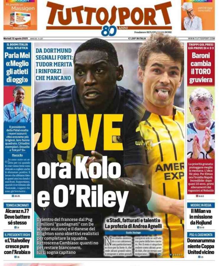 Tuttosport apre con “Juve, ora Kolo e O’Riley”: i due principali obiettivi per i bianconeri.