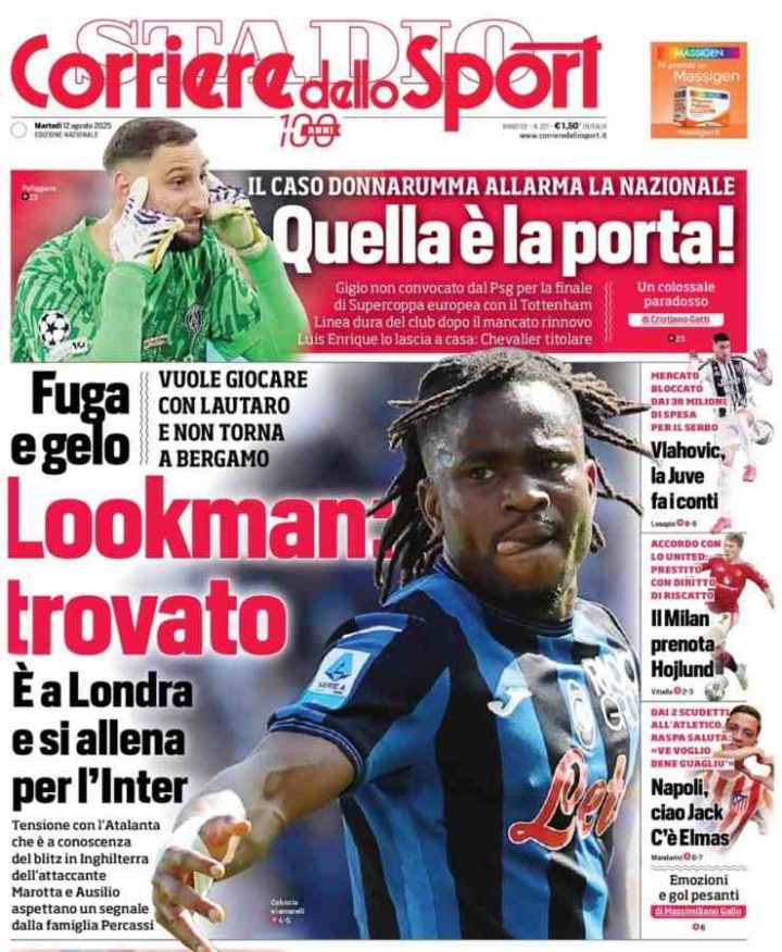 Il Corriere dello Sport apre su Lookman: il calciatore sarebbe a Londra ad allenarsi per l’Inter. Taglio alto dedicato, anche qui, al caso Donnarumma.