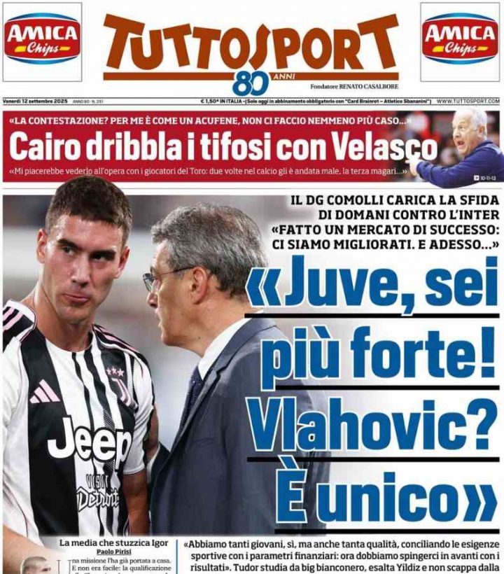 Le prime pagine dei principali quotidiani sportivi in edicola nella giornata di oggi, venerdì 12 settembre 2025.