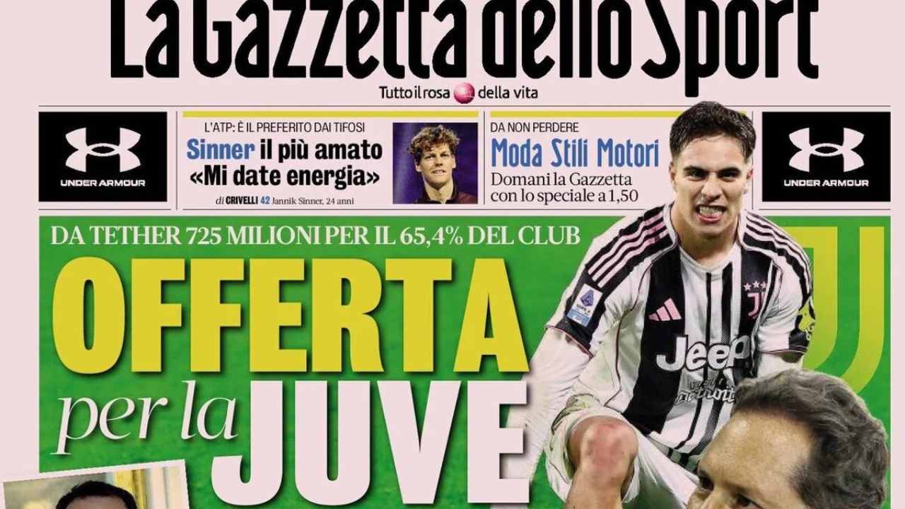 La Gazzetta dello Sport apre con Tether e la proposta d’acquisto della Juventus.