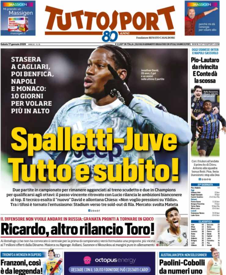 Tuttosport si sofferma invece sulle prossime partite di gennaio per la Juventus, mentre sulla destra il riferimento è a Pisa-Atalanta andata in scena nella serata di ieri.