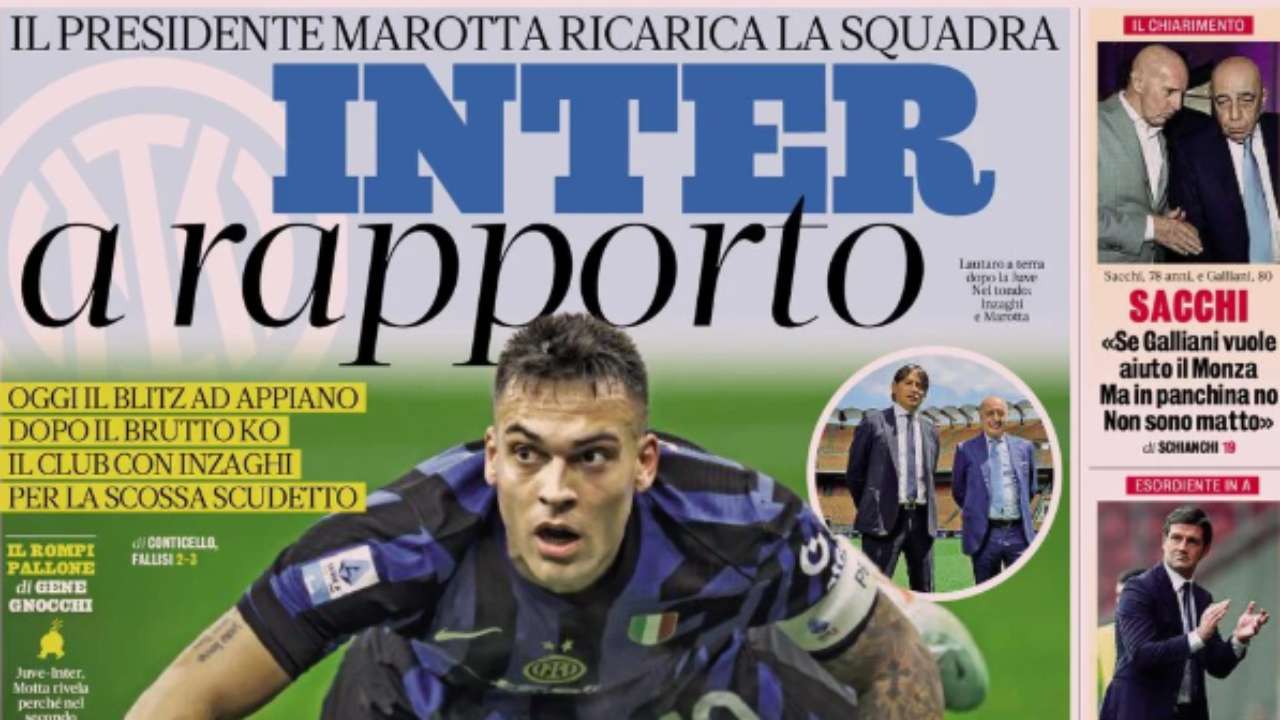 La Gazzetta dello Sport si concentra sul difficile momento dell’Inter, reduce dalla sconfitta contro la Juventus. Nella parte superiore della pagina, invece, un passaggio su Milan-Feyenoord, sfida decisiva per i rossoneri.