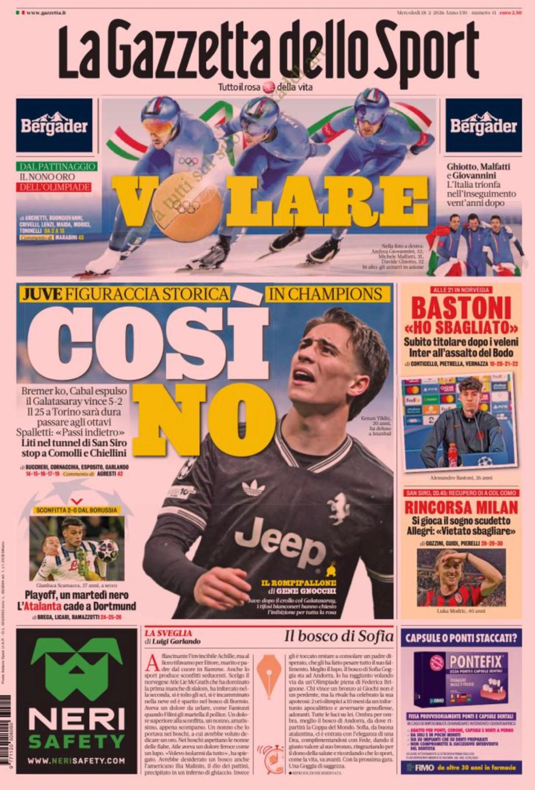 La Gazzetta dello Sport, mercoledì 18 febbraio 2026