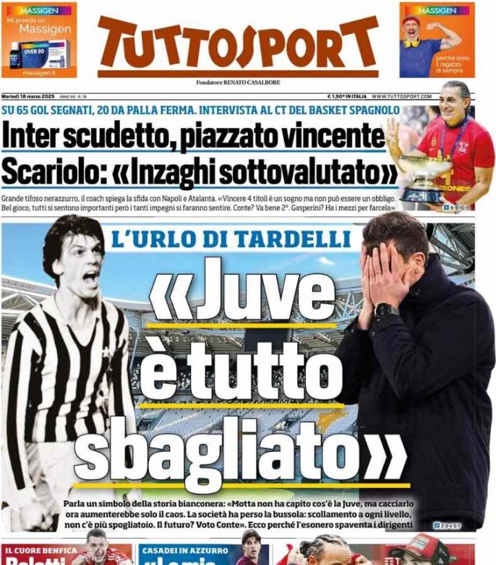 Tuttosport titola “Juve è tutto sbagliato”, frase pronunciata da un simbolo della storia juventina, ovvero Marco Tardelli