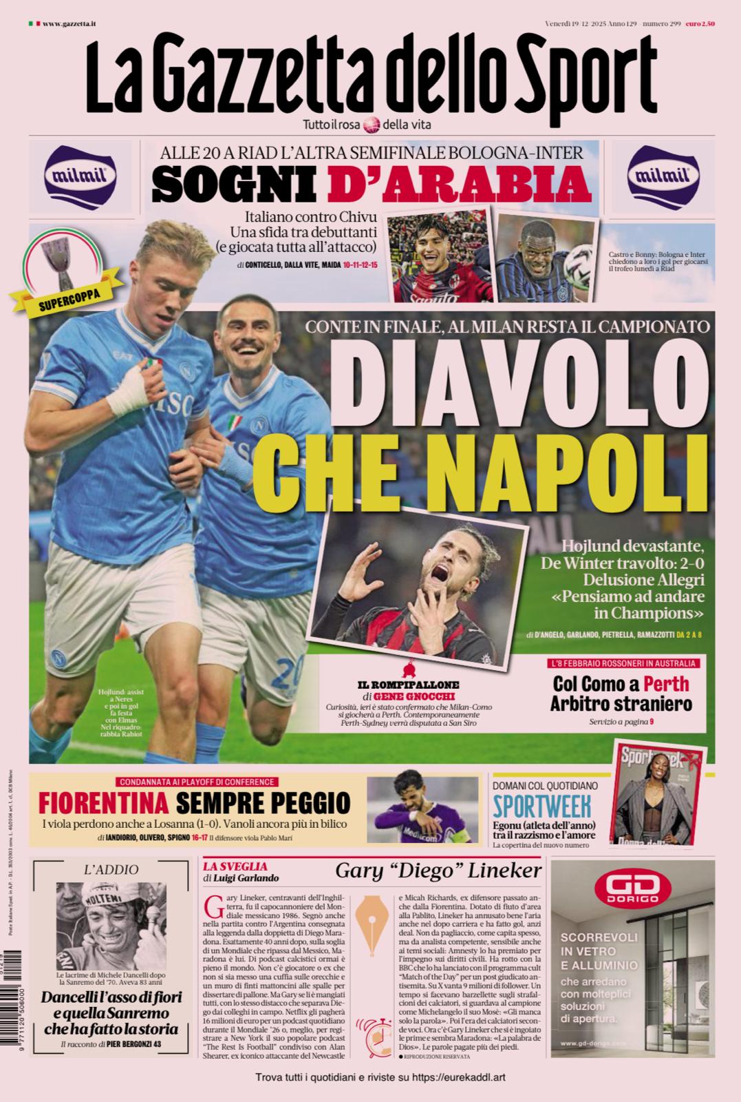 La Gazzetta dello Sport, venerdì 19 dicembre