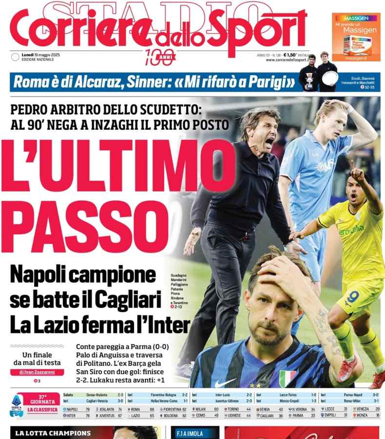 Anche il Corriere dello Sport si concentra sul pareggio di Inter e Napoli, rispettivamente contro Lazio e Parma.