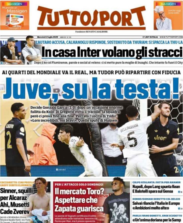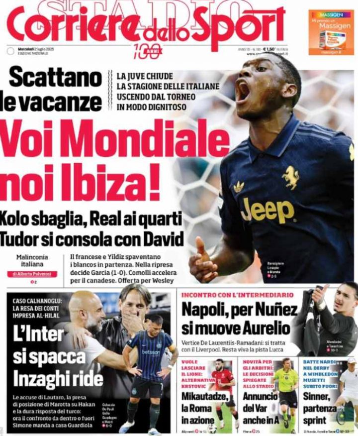 Anche il Corriere dello Sport fa ampio riferimento all’eliminazione della Juventus dal Mondiale per Club e al calciomercato delle italiane.
