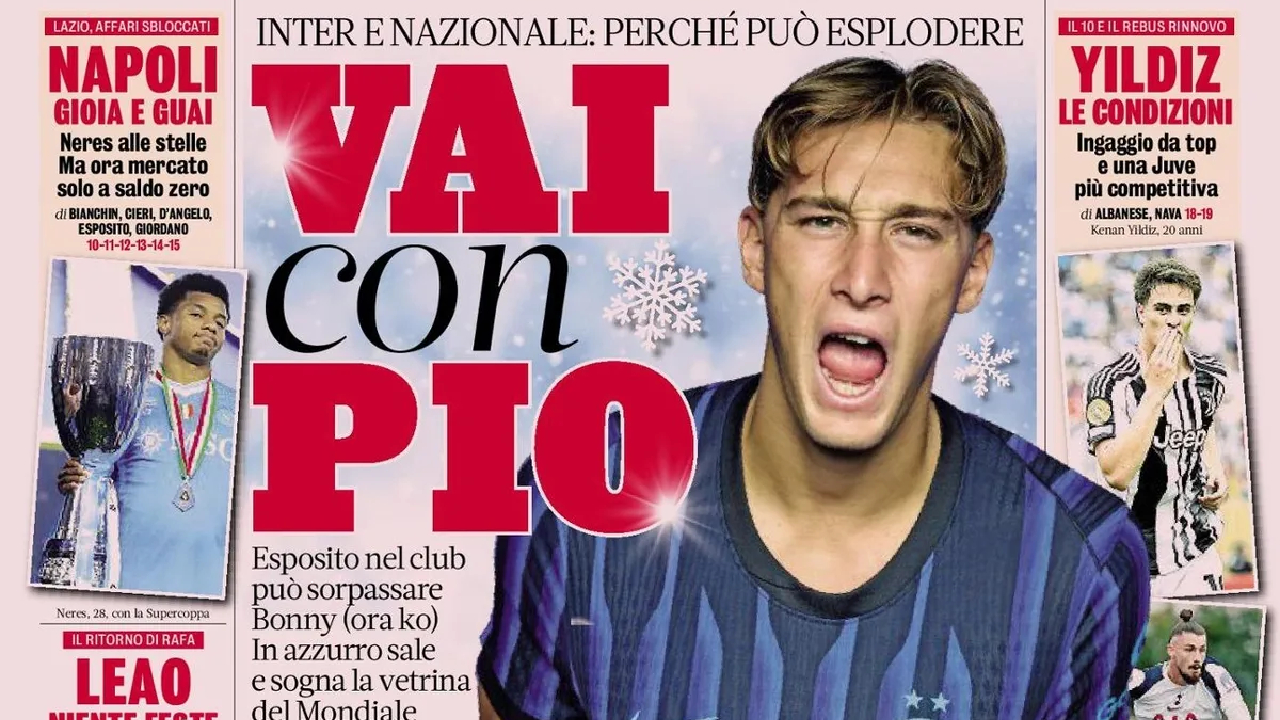 La Gazzetta dello Sport apre con la situazione di Francesco Pio Esposito, che dopo l’infortunio di Bonny può ritagliarsi sempre più spazio in casa Inter