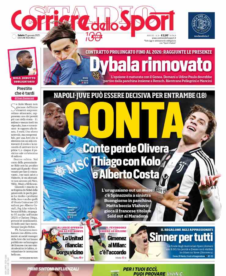 Anche il Corriere dello Sport dedica ampio spazio alla sfida del Maradona tra Napoli e Juventus.