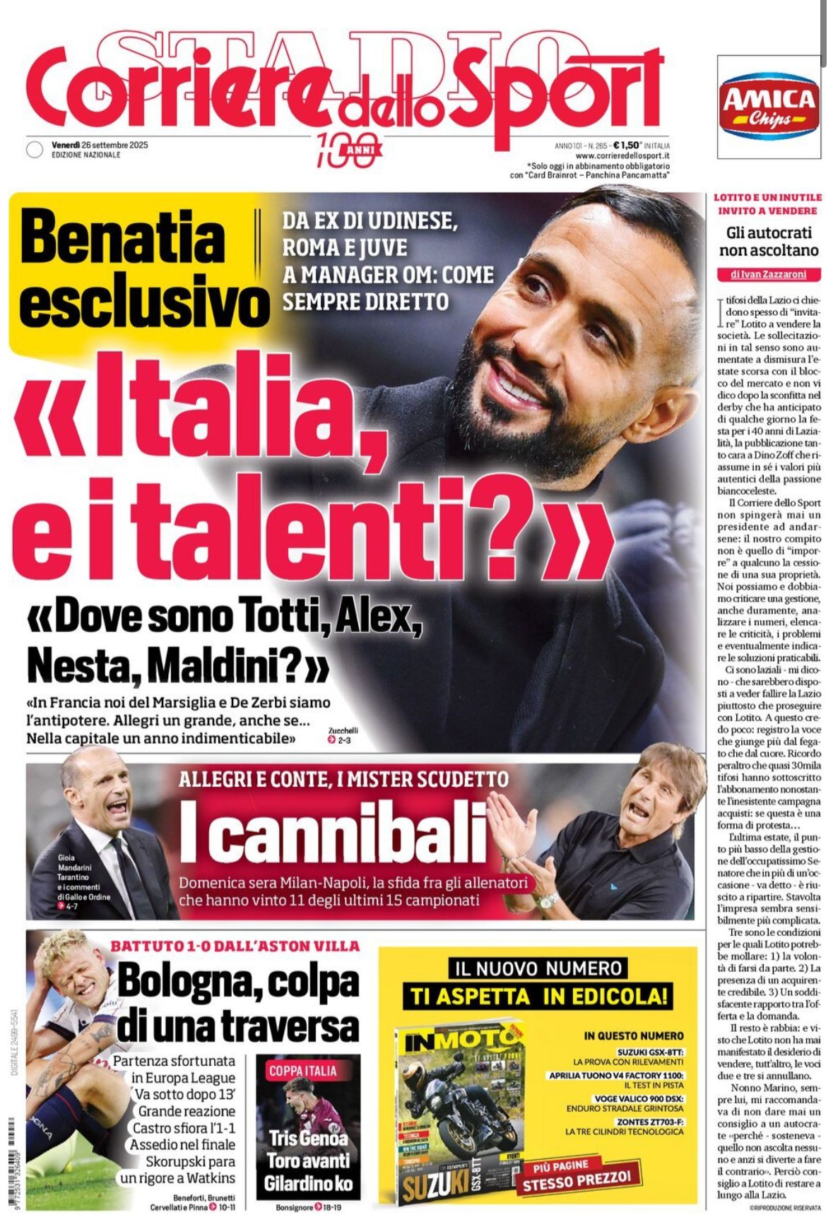 La gallery delle prime pagine dei principali quotidiani sportivi italiani della giornata di oggi, venerdì 26 settembre 2025