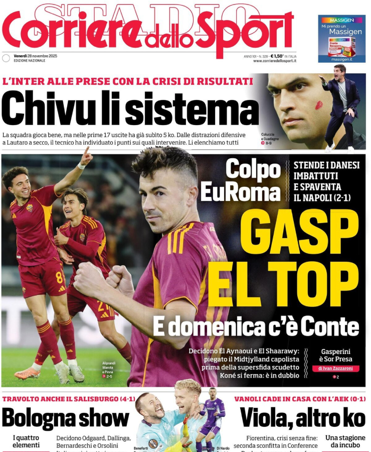La gallery delle prime pagine dei principali quotidiani sportivi italiani in edicola oggi, venerdì 28 novembre 2025