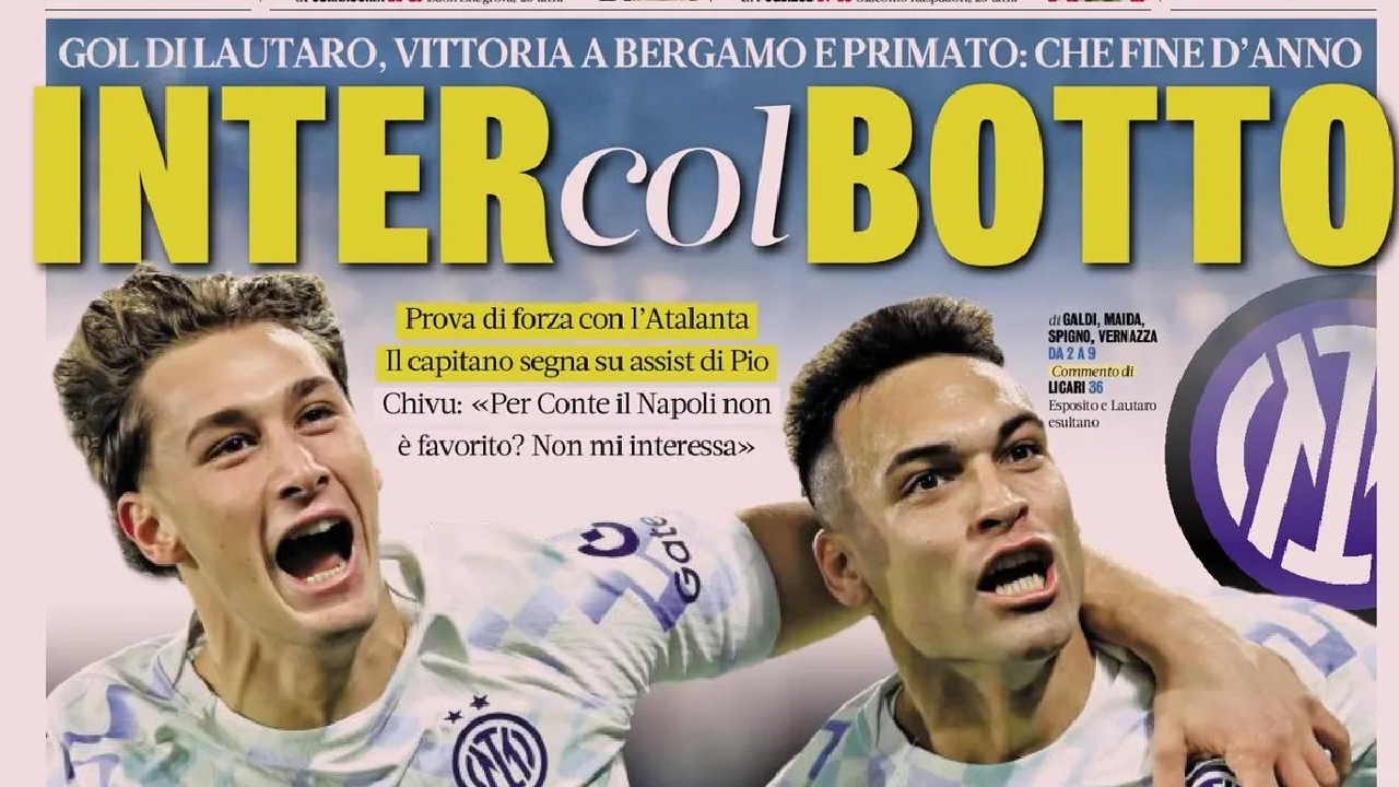Anche il Corriere dello Sport dedica la prima pagina al successo esterno dell’Inter contro l’Atalanta. Continua il testa a testa in vetta, con Milan e Napoli che vincono rispettivamente contro Verona e Cremonese.