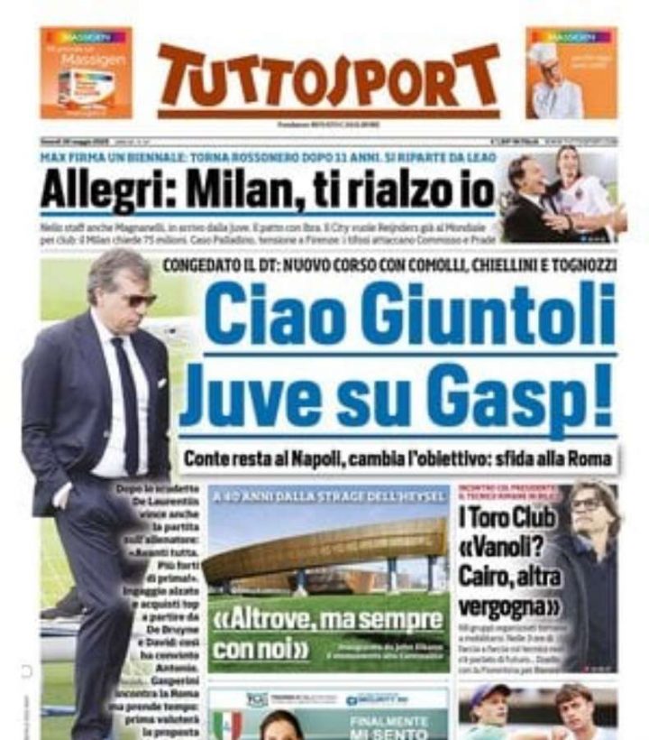Il Corriere dello Sport si concentra anche sulle panchine di Bologna e Juventus. Vincenzo Italiano ha rinnovato con i rossoblù, mentre per quanto riguarda i bianconeri Cristiano Giuntoli verso la separazione.
