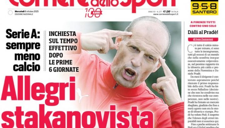 Il Corriere dello Sport incentra la prima pagina sull’inchiesta sul tempo effettivo delle prime 6 giornate di Serie A. Il giornale dà spazio anche a De Bruyne, re degli sprint nella partita tra Napoli e Genoa, e ai risultati di Chivu sulla panchina nerazzurra.