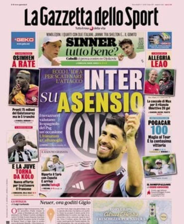Prime Pagine: “Inter su Asensio”; “Sancho-Juve, ci siamo!”