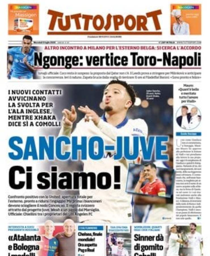 Tuttosport si concentra sulle operazioni di calciomercato di Torino e Juventus: da Ngonge, obiettivo granata, fino a Jadon Sancho seguito dai bianconeri (ala inglese del Chelsea).