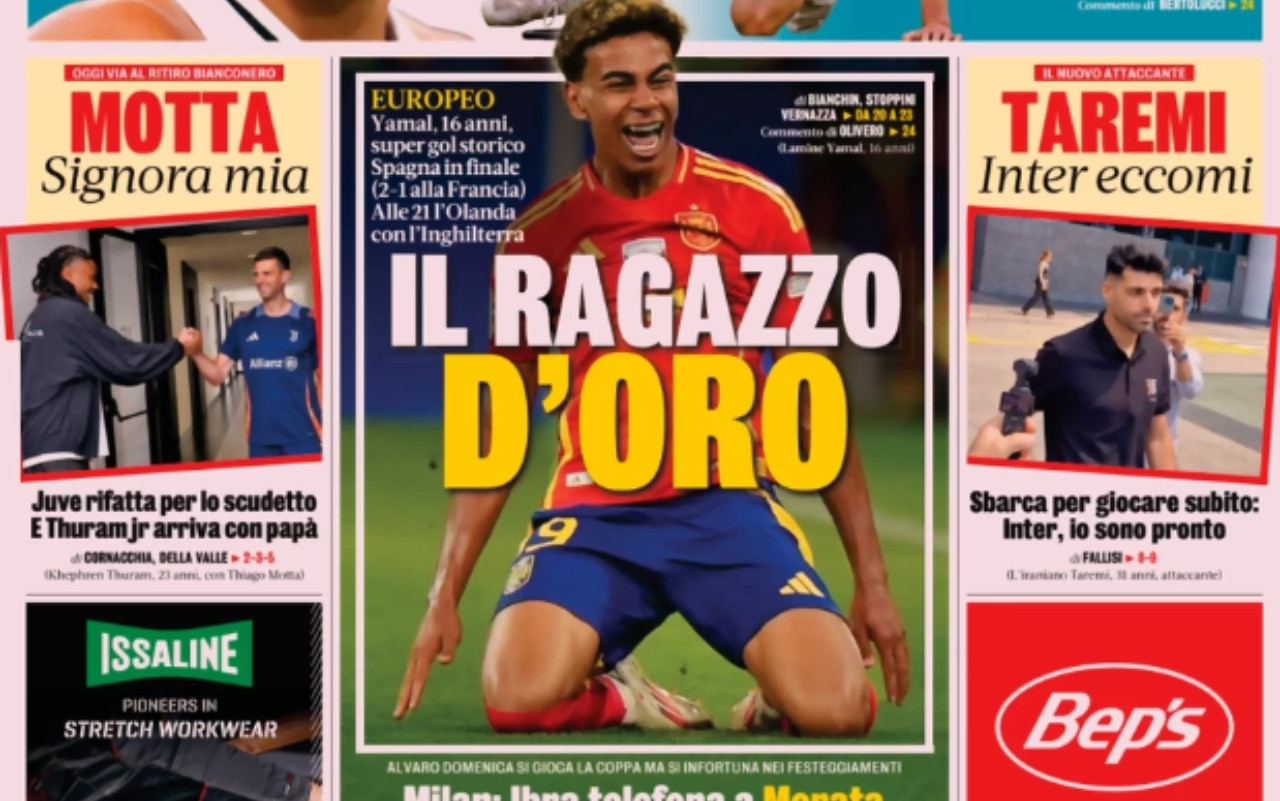 Le prime pagine dei quotidiani sportivi di mercoledì 10 luglio, che dedicano ampio spazio al calciomercato.
